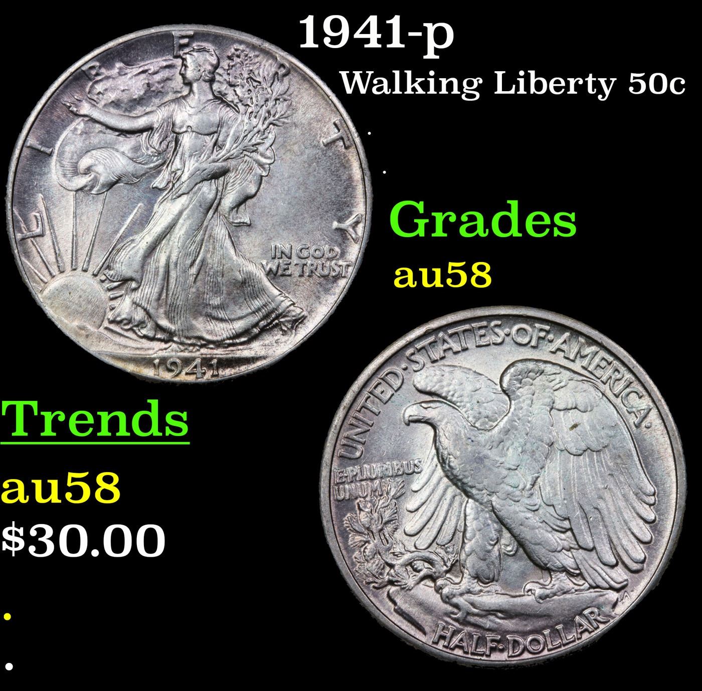 1941-p Walking Liberty Half Dollar 50c Grades Choice AU/BU Slider.