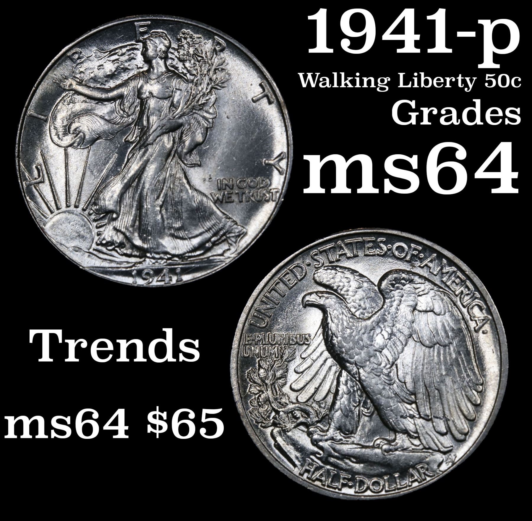 1941-p Walking Liberty Half Dollar 50c Grades Choice Unc.