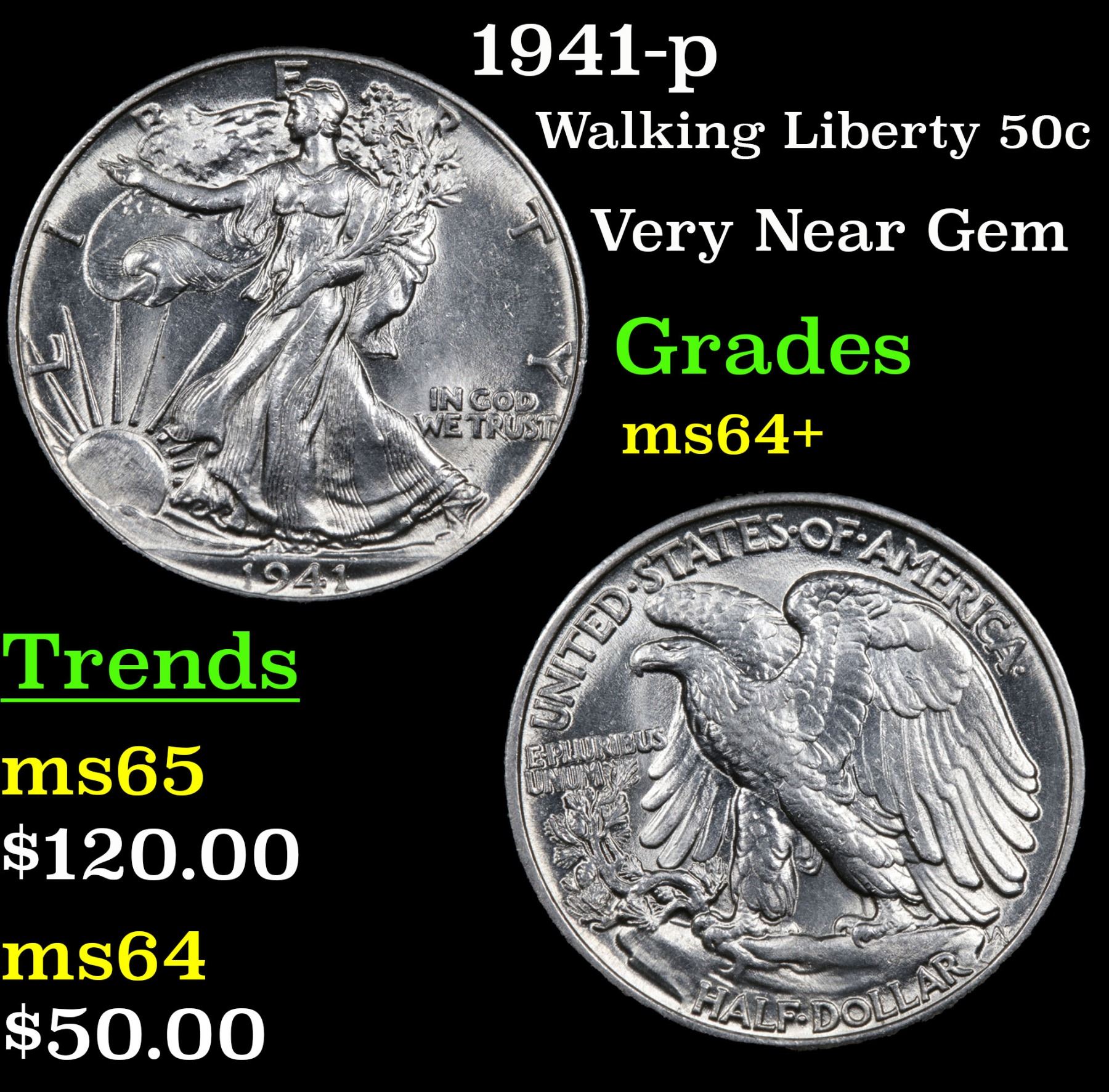 1941-p Walking Liberty Half Dollar 50c Grades Choice+ Unc.