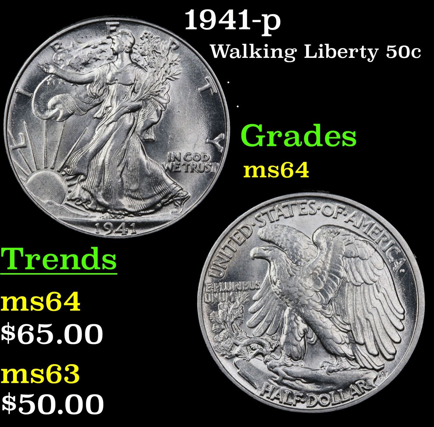 1941-p Walking Liberty Half Dollar 50c Grades Choice Unc.