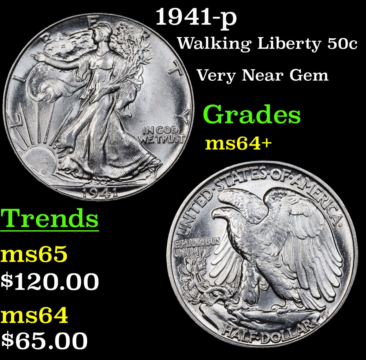 1941-p Walking Liberty Half Dollar 50c Grades Choice+ Unc.