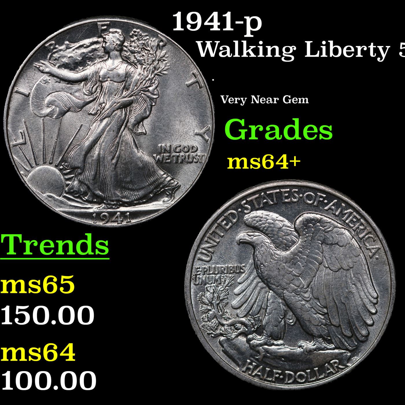 1941-p Walking Liberty Half Dollar 50c Grades Choice+ Unc.