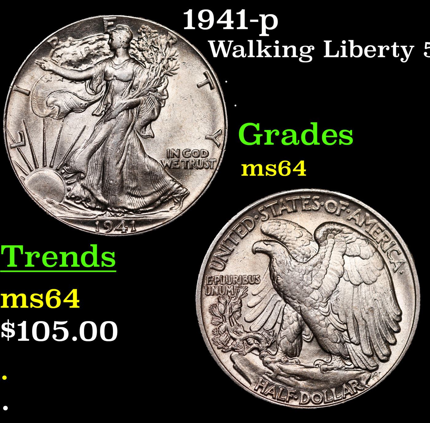 1941-p Walking Liberty Half Dollar 50c Grades Choice Unc.