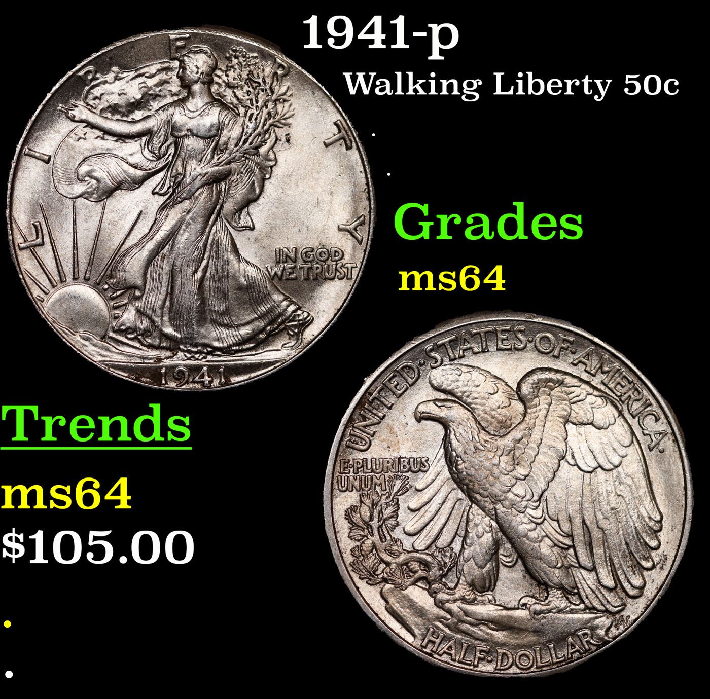 1941-p Walking Liberty Half Dollar 50c Grades Choice Unc.