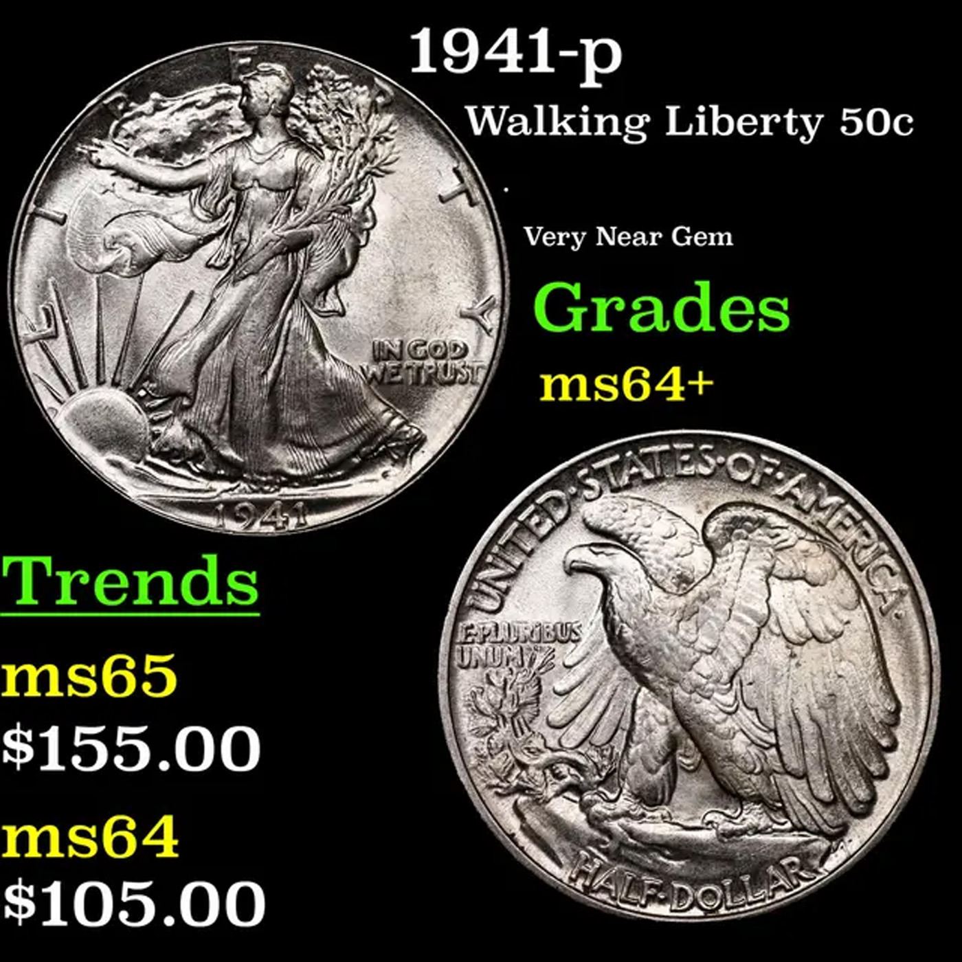 1941-p Walking Liberty Half Dollar 50c Grades Choice+ Unc.