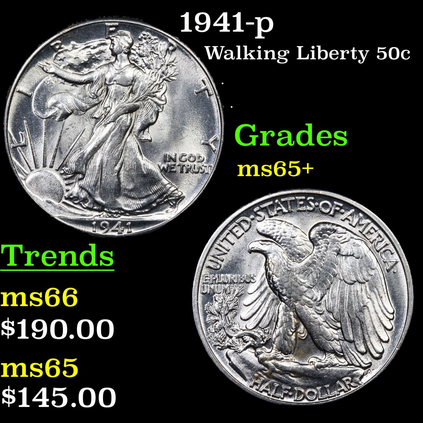 1941-p Walking Liberty Half Dollar 50c Grades GEM+ Unc.