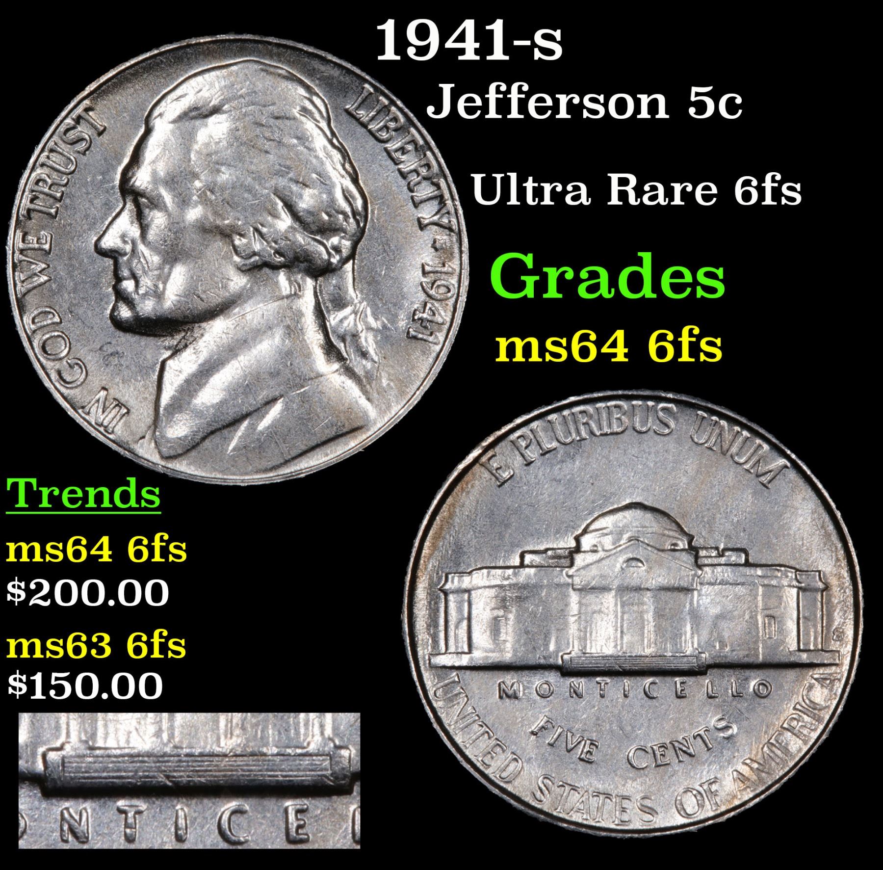 1941-s Jefferson Nickel 5c Grades Choice Unc 6fs.