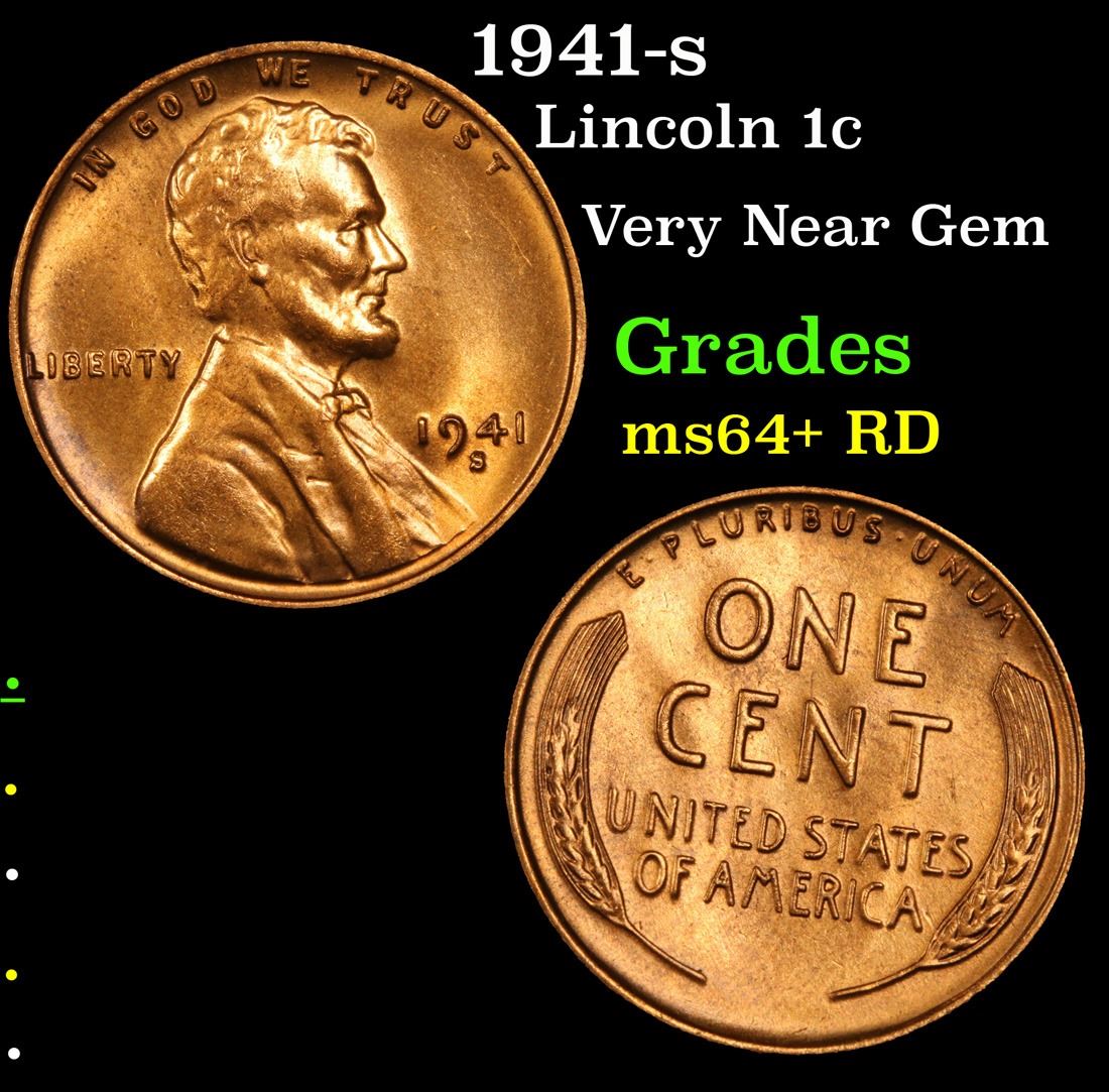 1941-s . Very Near Gem Lincoln Cent 1c Grades Choice+ Unc RD.