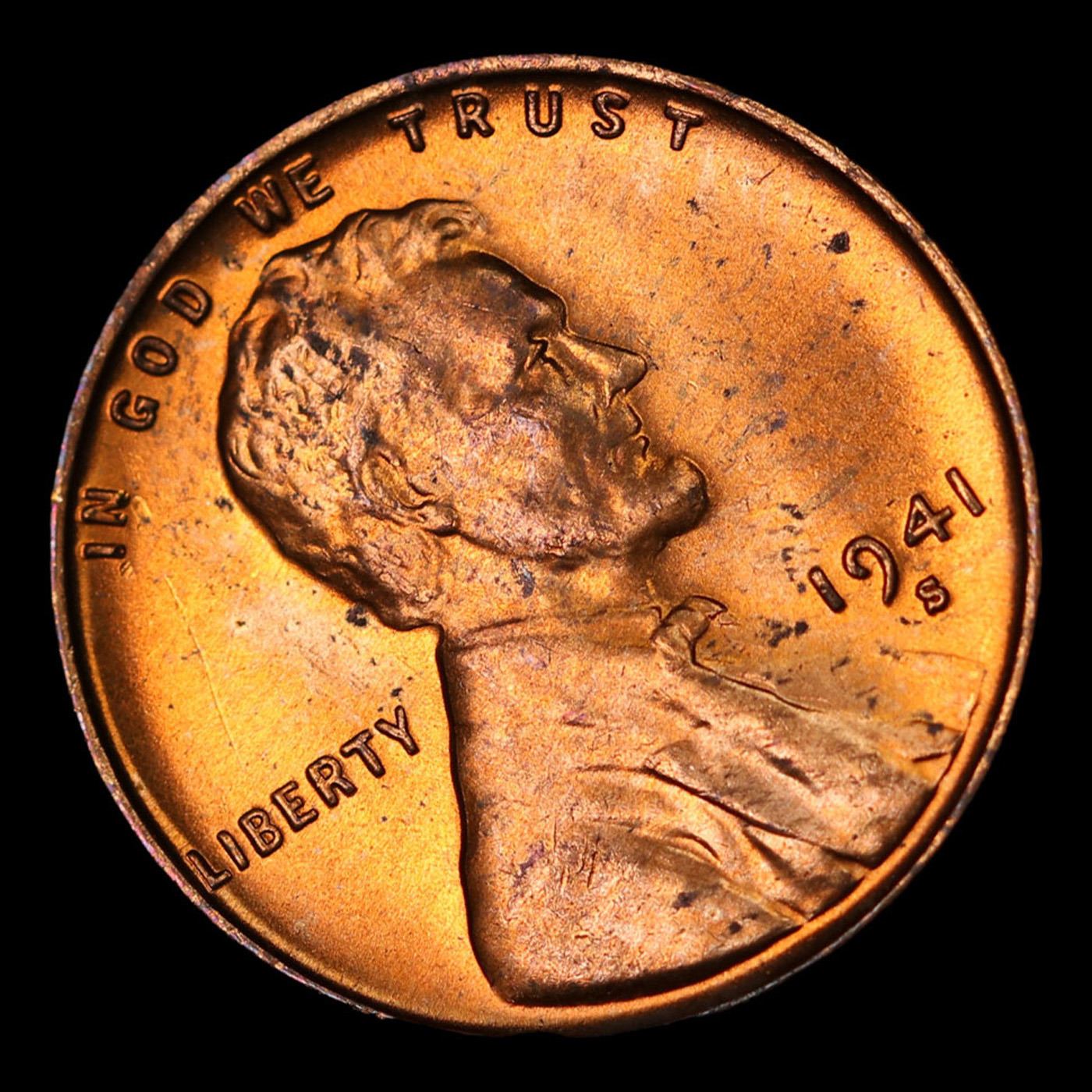1941-s Lincoln Cent 1c Grades Choice+ Unc RD.