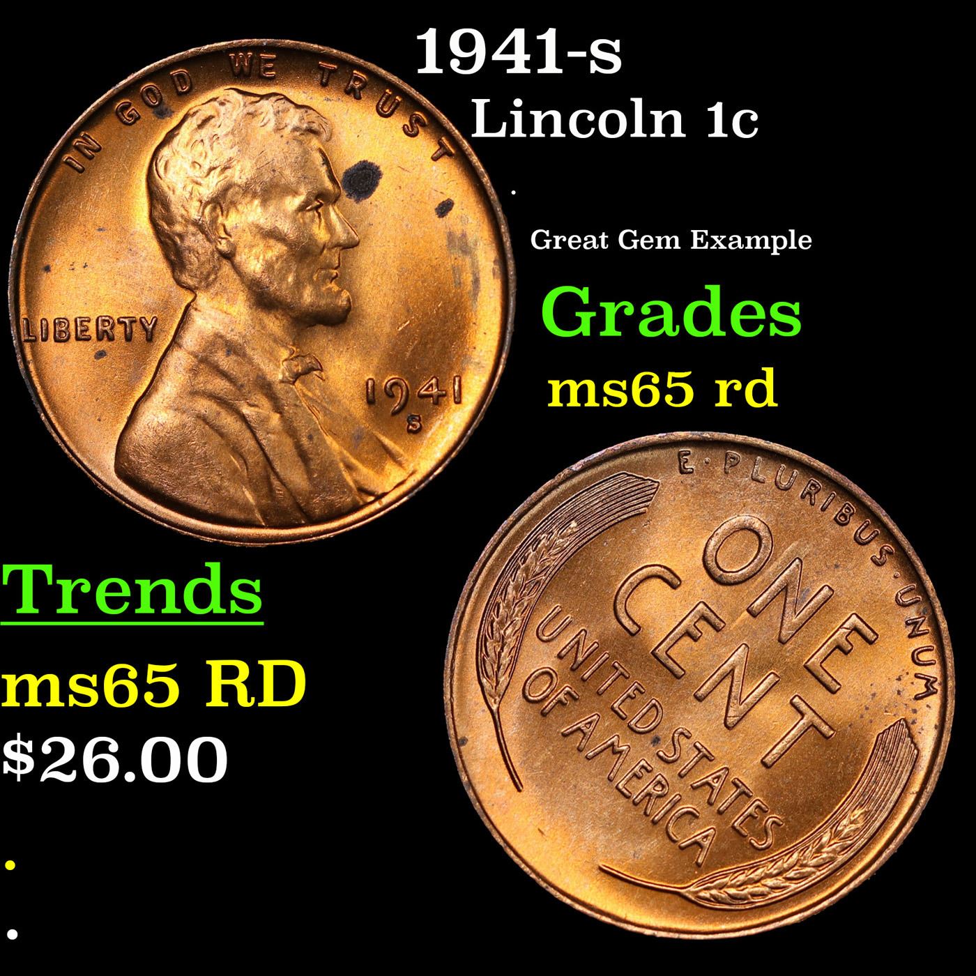 1941-s Lincoln Cent 1c Grades GEM Unc RD.