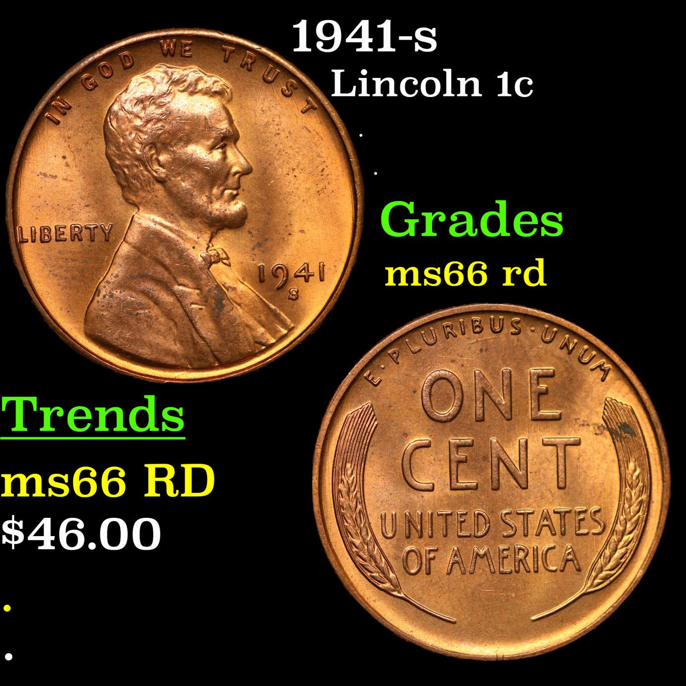 1941-s Lincoln Cent 1c Grades GEM+ Unc RD.