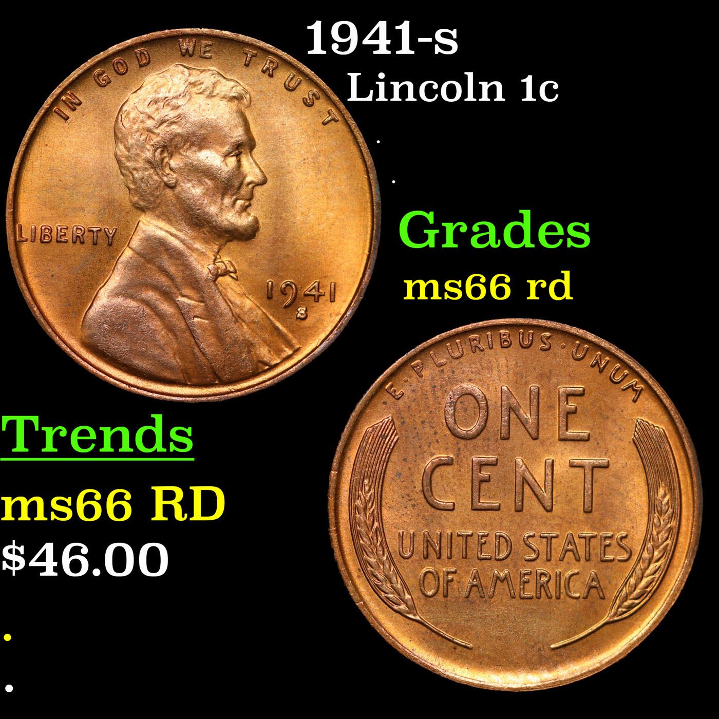 1941-s Lincoln Cent 1c Grades GEM+ Unc RD.