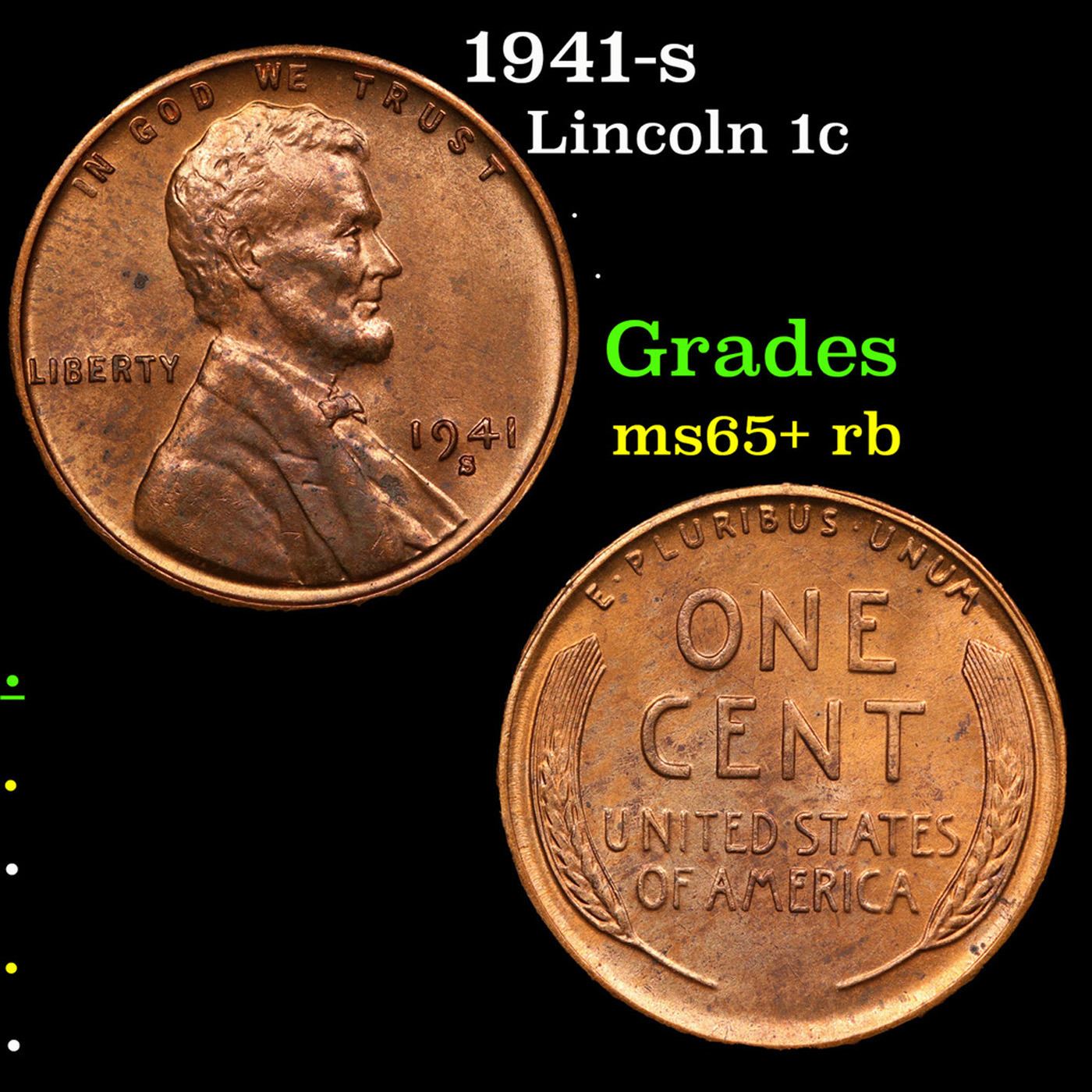 1941-s Lincoln Cent 1c Grades Gem+ Unc RB.