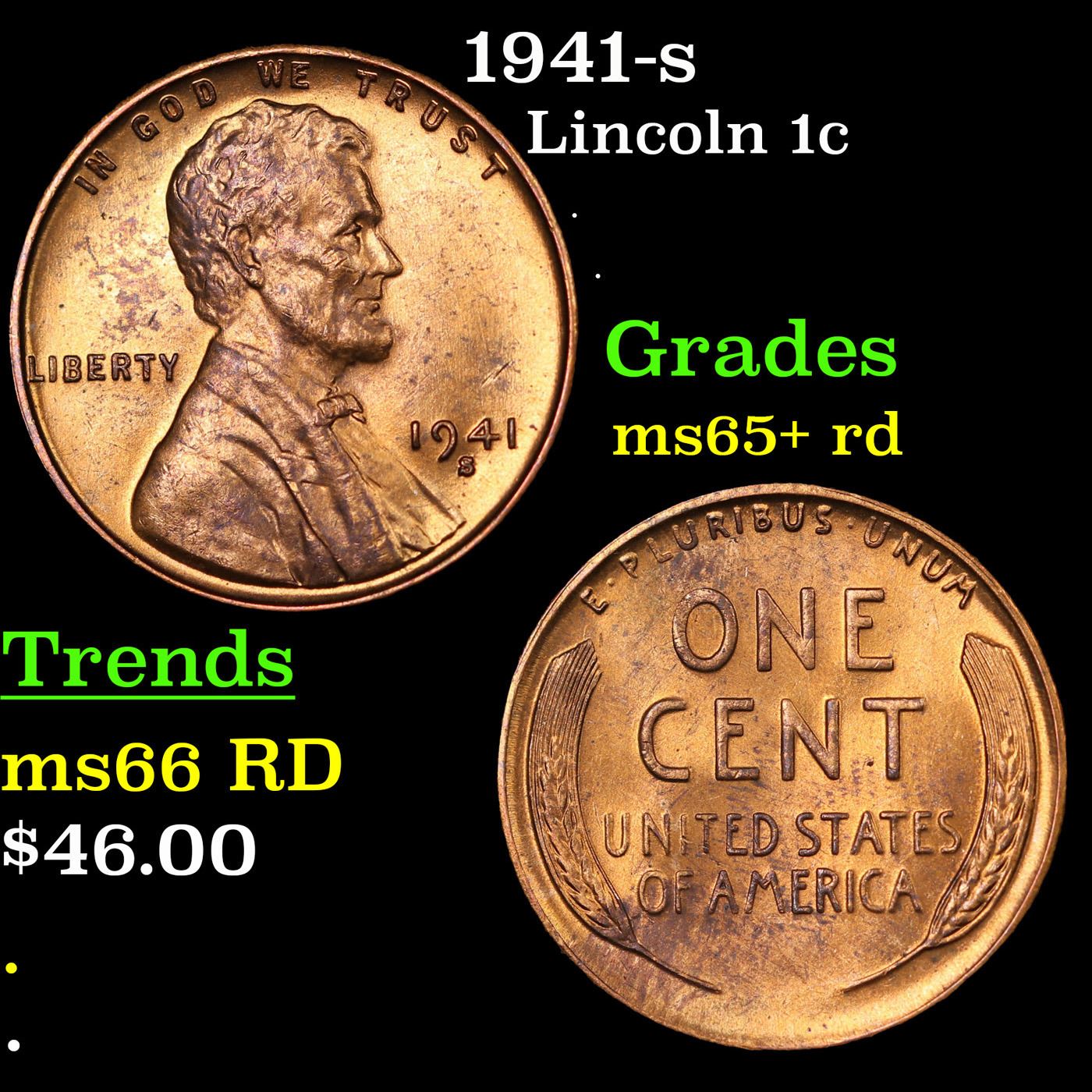 1941-s Lincoln Cent 1c Grades Gem+ Unc RD.