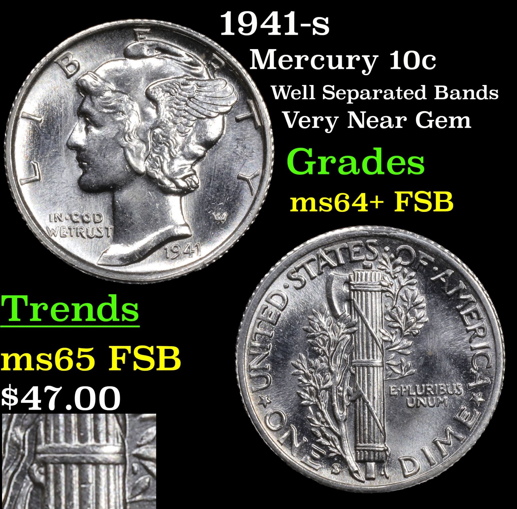 1941-s Mercury Dime 10c Grades Choice Unc+ FSB.