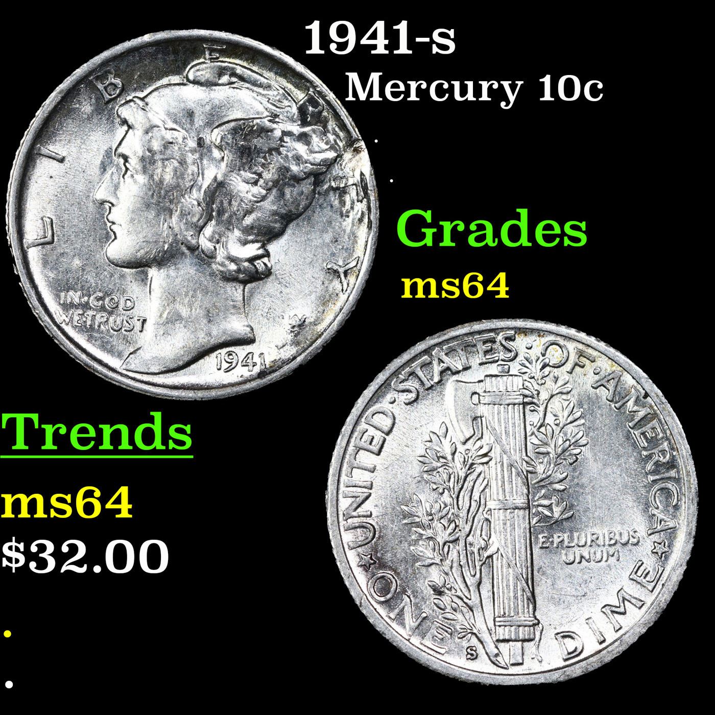 1941-s Mercury Dime 10c Grades Choice Unc.
