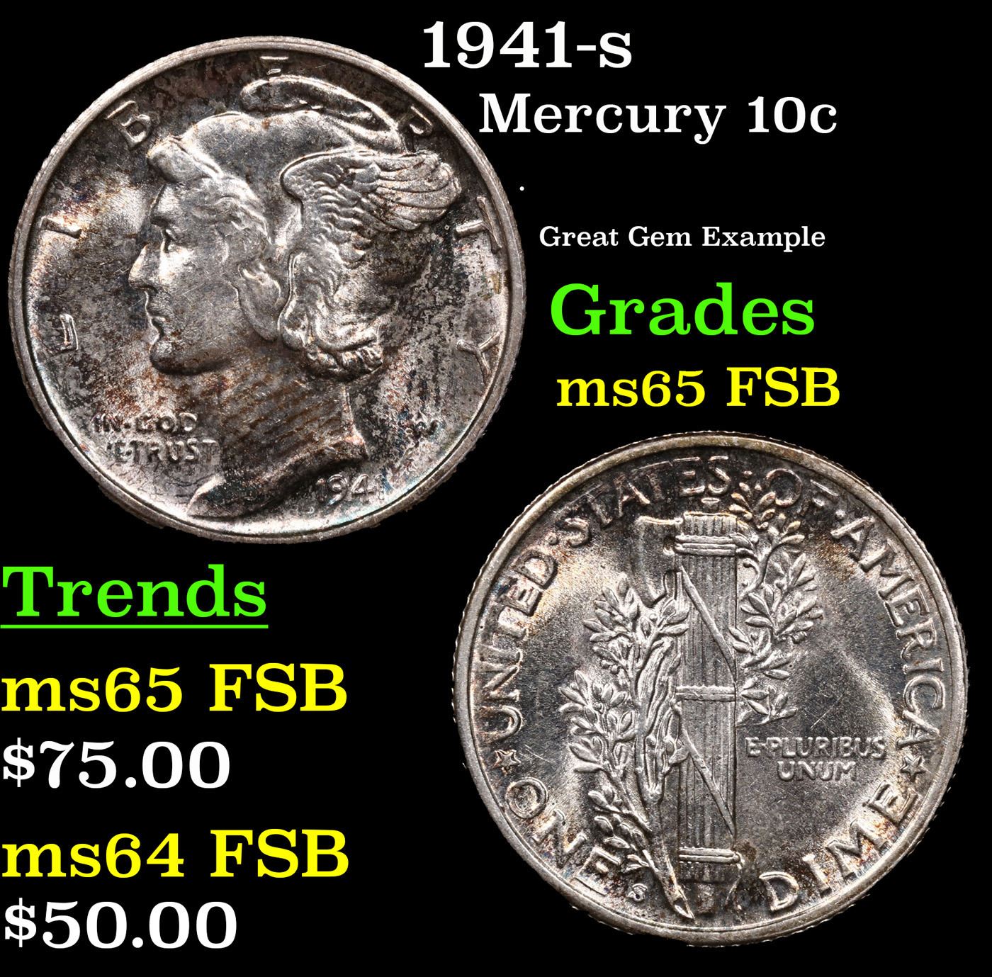 1941-s Mercury Dime 10c Grades GEM FSB.