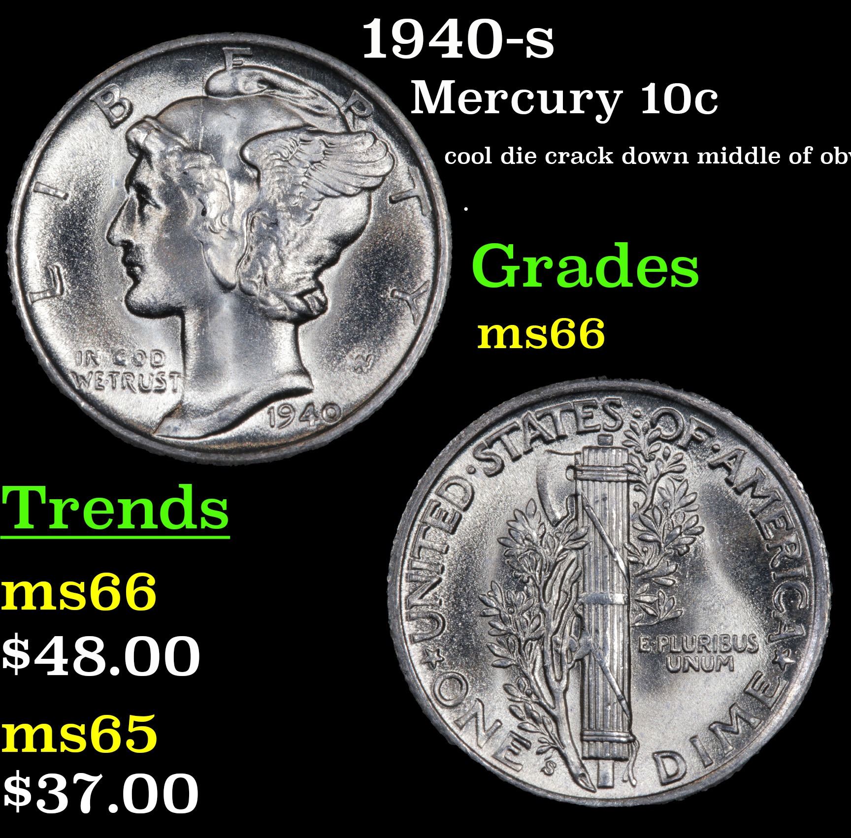 1941-s Mercury Dime 10c Grades GEM+ Unc.