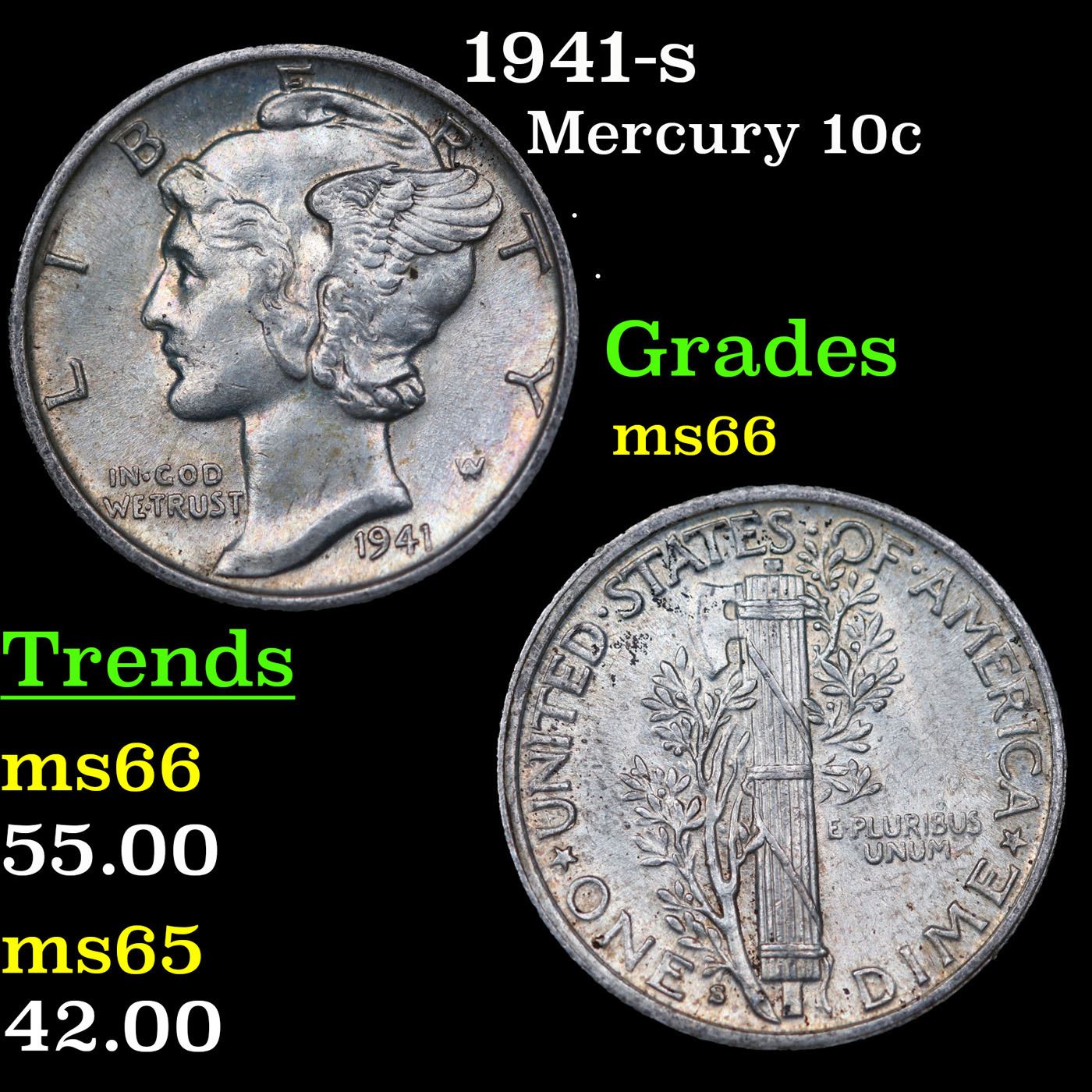 1941-s Mercury Dime 10c Grades GEM+ Unc.