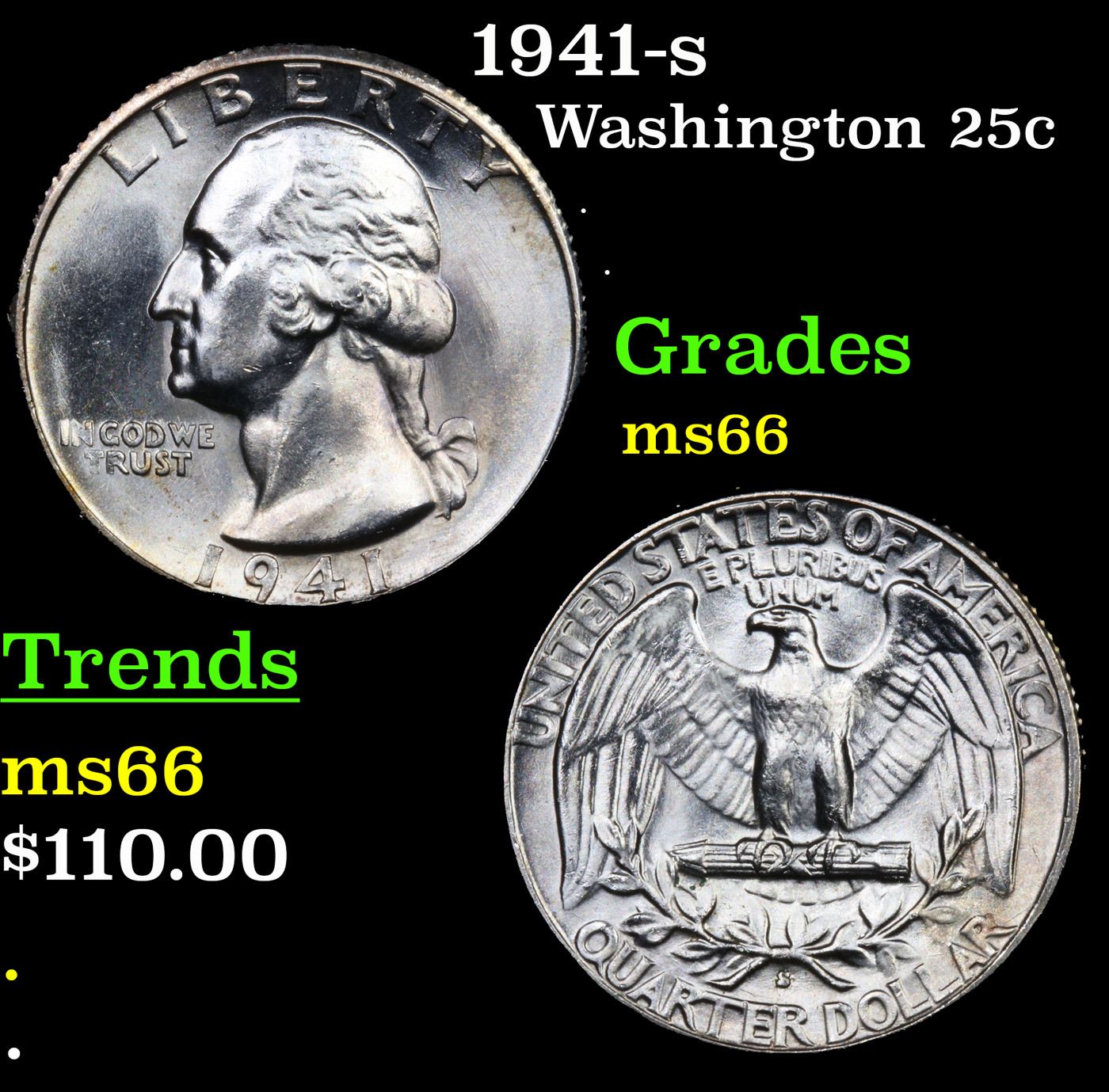 1941-s Washington Quarter 25c Grades GEM+ Unc.