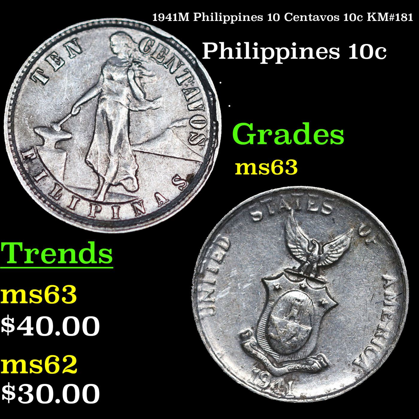 1941M Philippines 10 Centavos 10c KM#181 Grades Select Unc.