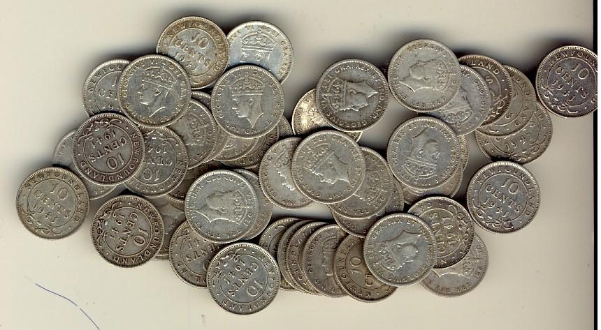 1941c Nfld 10¢. Lot of 50 pcs, VF to EF.