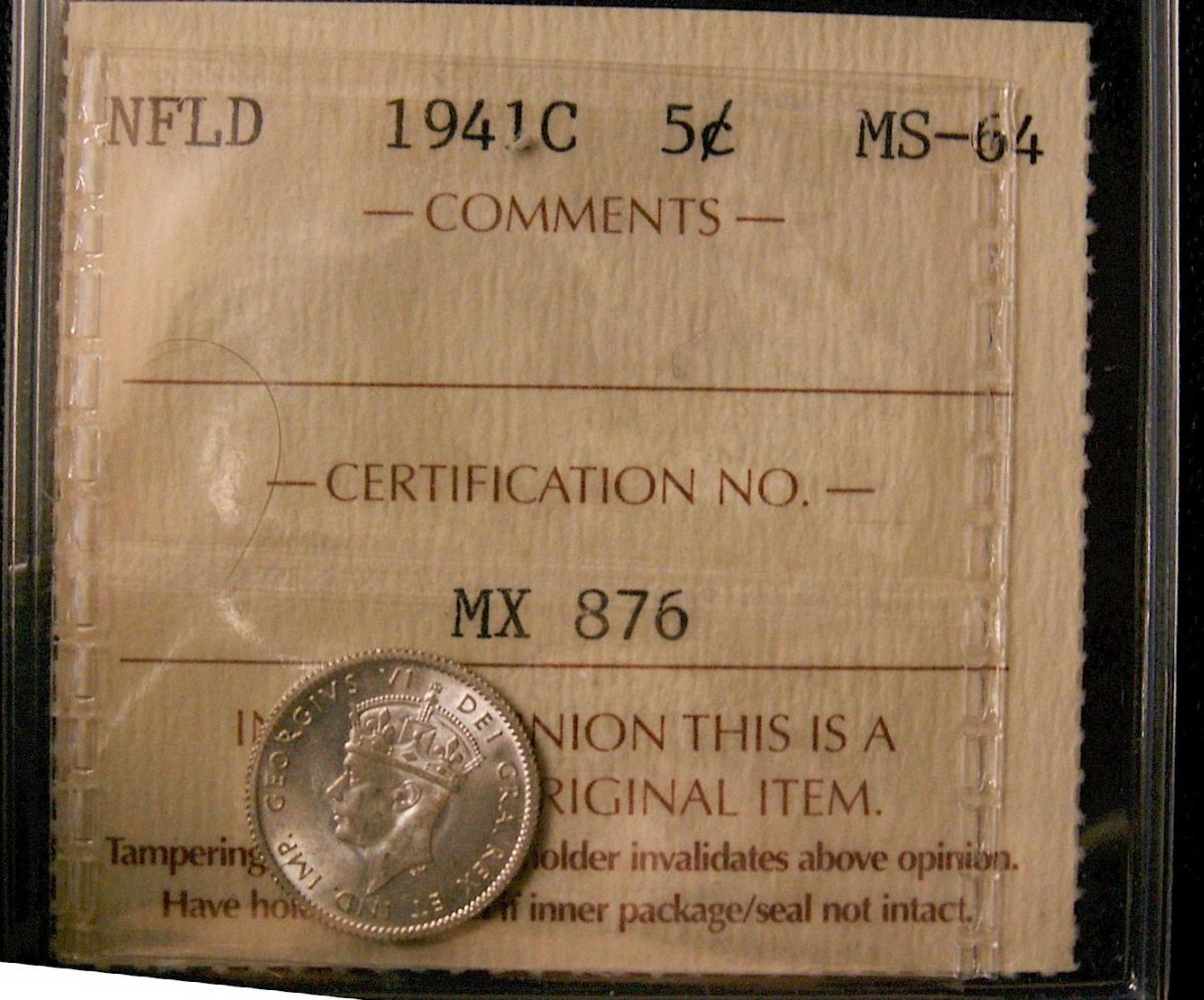 1941c Nfld 5¢ ICCS MS64. White with frostlike finish.