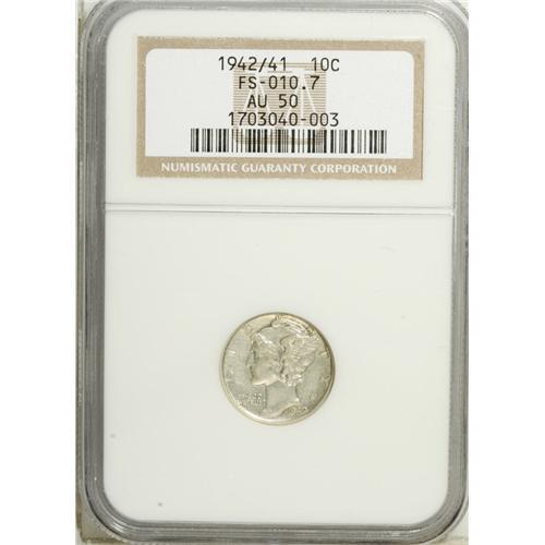 <B>1942/1 10C AU50 NGC.</B></I> A lightly worn example of this prominent and ever-popular <I>Guide Book</B></I> variety. The faintly gold-toned surfaces retain much of their original luster.<BR><BR><b>Shipping:</b> Coin/Currency (<a target="_blank" href="http://www.heritageauctions.com/common/shipping.php">view shipping information</a>)