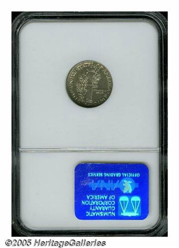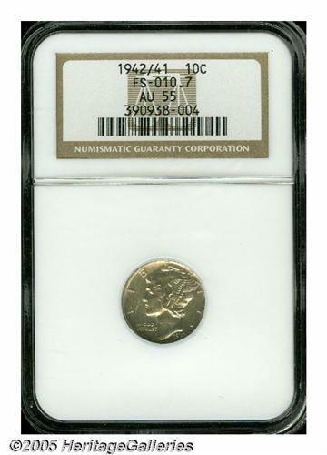 <B>1942/1<10C> AU55 NGC.</B></I> FS-010.7. Near-brilliant surfaces display light contact marks scattered about. The design features are well defined throughout. A few minute contact marks are scattered about, especially on Mercury's cheek and neck, and on the fasces.<BR><I>From The Dr. Theodore Almquist Collection.</B></I>
