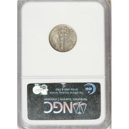 <B>1942/1 10C AU58 NGC.</B></I> FS-101, formerly FS-010.7. The satiny surfaces are aglow on this well struck overdated dime. Modest friction and handling marks attest to brief circulation, but this coin is immensely appealing otherwise.<BR><BR><B>Coin Engraver:</B> Adolph A. Weinman<BR><BR><b>Shipping:</b> Coins & Currency (<a target="_blank" href="http://www.heritageauctions.com/common/shipping.php">view shipping information</a>)