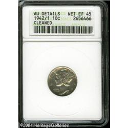 1942/1 10C --Cleaned--ANACS. AU Details, Net XF45. <B>1942/1 10C --Cleaned--ANACS. AU Details, Net XF45.</B></I> This bright, finely hairlined popular overdate is lightly toned, and reveals just a few minute contact marks on Mercury's face and on the fasces. <BR><BR><B>Important notice:</B> Heritage usually auctions material at the rate of 200-250 lots per hour. On some occasions eBay Live bid software or the Internet may not be able to keep up with the pace of the auction. We recommend placing a realistic absentee bid now as insurance to avoid disappointment. Occasionally the auctioneer may eliminate or reject an eBay Live bid, and the auctioneer may also reopen a lot after the close of the eBay live bidding (usually because we missed an audience bid), and may reject your bid even if it shows you as the winning bidder. By bidding via eBay Live, you agree that Heritage may award the lot to another bidder at its sole discretion under the circumstances described above or any other reasonable circumstances. Since eBay bids are not shown to us until we open the lot on the floor, we treat those bids just like floor bids. In most cases the floor responds before the eBay bid is presented to us, due to Internet lag time, so for consistency we have made it a policy that floor bids are always considered first over tie eBay live bids. Also please note that all Heritage lots purchased through eBay Live carry a 20% Buyer's Premium. Please make sure you read the Terms and Conditions before you bid. This lot is being auctioned in conjunction with a live floor auction by Heritage Galleries & Auctioneers. All final auction and invoice information will be supplied by Heritage Galleries & Auctioneers, and all other information should be considered preliminary. Lot:5831