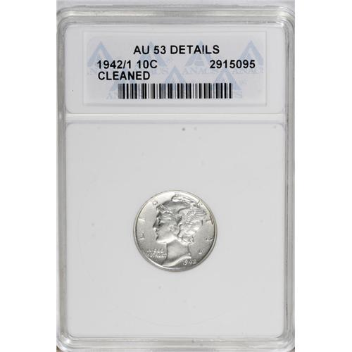 <B>1942/1 10C --Cleaned--ANACS. AU53 Details.</B></I> A lightly worn, uniformly bright example of the "19412," a jocular nickname for this popular overdate. Light hairlines are noted in the fields.<BR><BR><b>Shipping:</b> Coin/Currency (<a target="_blank" href="http://www.heritageauctions.com/common/shipping.php">view shipping information</a>)