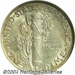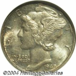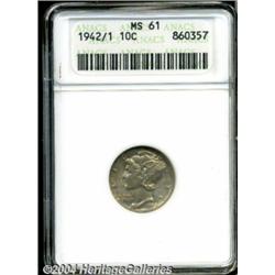 <B>1942/1<10C> MS61 ANACS.</B></I> Lightly toned overall with a predominate copper-golden appearance. Very lustrous, with well preserved surfaces for the grade. From an average strike, but the central reverse bands are nearly fully split. A desirable Mint State example of this popular variety, whose overdate features can be seen with the naked eye. <BR><BR><B>Important notice:</B> Heritage usually auctions material at the rate of 200-250 lots per hour. On some occasions eBay Live bid software or the Internet may not be able to keep up with the pace of the auction. We recommend placing a realistic absentee bid now as insurance to avoid disappointment. Occasionally the auctioneer may eliminate or reject an eBay Live bid, and the auctioneer may also reopen a lot after the close of the eBay live bidding (usually because we missed an audience bid), and may reject your bid even if it shows you as the winning bidder. By bidding via eBay Live, you agree that Heritage may award the lot to another bidder at its sole discretion under the circumstances described above or any other reasonable circumstances. Since eBay bids are not shown to us until we open the lot on the floor, we treat those bids just like floor bids. In most cases the floor responds before the eBay bid is presented to us, due to Internet lag time, so for consistency we have made it a policy that floor bids are always considered first over tie eBay live bids. Also please note that all Heritage lots purchased through eBay Live carry a 20% Buyer's Premium. Please make sure you read the Terms and Conditions before you bid. </span></font></tr></table></td></tr></table>