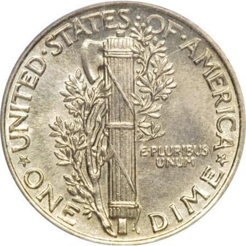 <B>1942/1 10C MS63 Full Bands PCGS.</B></I> FS-101, formerly FS-010.7. This <I>Guide Book</B></I> variety is so prominent that it was noticed by even non-numismatists, and it was discovered soon after its release. As a result, better-grade examples, even Mint State pieces, are generally available for a price. The conditions that brought about this wartime overdate, however, also meant that few such pieces showed bold definition.<BR> By contrast, this Select example offers excellent definition, including an unbroken line of the fasces. Whispers of green-gold toning visit the fields, and the lustrous surfaces shine. Though a few small abrasions on and around the portrait preclude a better designation, the overall eye appeal is solid. Population: 10 in 63 Full Bands, 20 finer (12/07).<BR><BR><B>Coin Engraver:</B> Adolph A. Weinman<BR><BR><b>Shipping:</b> Coins & Currency (<a target="_blank" href="http://www.heritageauctions.com/common/shipping.php">view shipping information</a>)