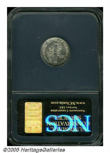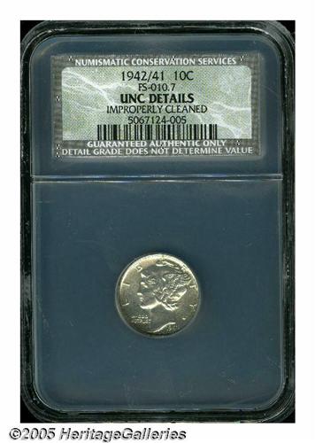 <B>1942/1<10C> Unc Details, Improperly Cleaned, NCS.</B></I> Boldly struck, if not quite fully detailed on the central reverse bands, this example seems unabraded and only shows a trace of peripheral toning on either side. The overdate feature is unusually clear, and, other than a slightly brighter-than-expected overall look, the piece seems to have avoided any serious after-effects from a onetime improper cleaning.<BR><I>From The Empire State Collection.</B></I>