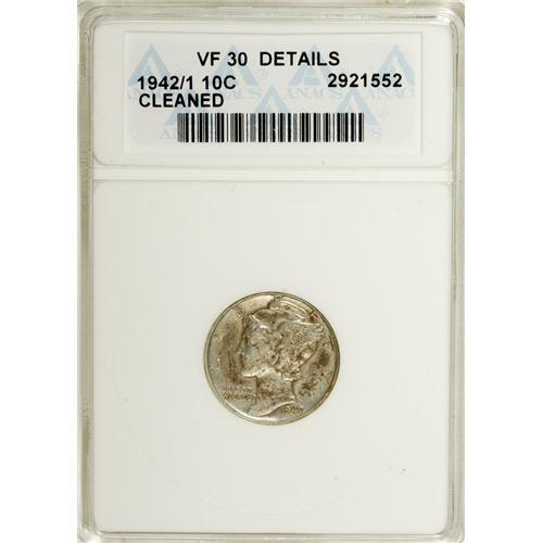 <B>1942/1 10C --Cleaned--ANACS. VF30 Details.</B></I> NGC Census: (214/820). PCGS Population (117/834). Mintage: 205,432,336. Numismedia Wsl. Price for NGC/PCGS coin in VF30: $654. (#5036)<BR><BR><b>Shipping:</b> Coin/Currency (<a target="_blank" href="http://www.heritageauctions.com/common/shipping.php">view shipping information</a>)