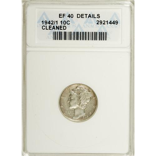 <B>1942/1 10C --Cleaned--ANACS. XF40 Details.</B></I> NGC Census: (109/497). PCGS Population (168/514). Mintage: 205,432,336. Numismedia Wsl. Price for NGC/PCGS coin in XF40: $735. (#5036)<BR><BR><b>Shipping:</b> Coin/Currency (<a target="_blank" href="http://www.heritageauctions.com/common/shipping.php">view shipping information</a>)