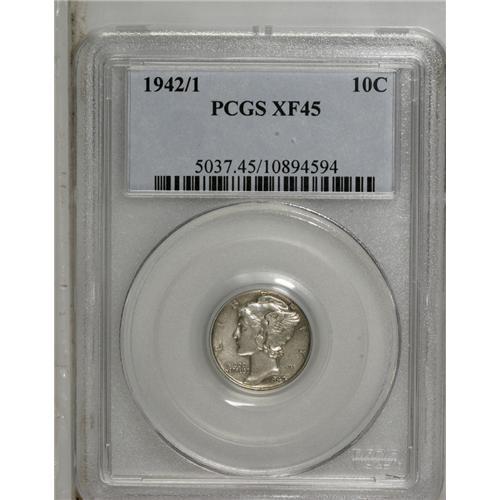 <B>1942/1 10C XF45 PCGS.</B></I> A lightly worn but otherwise trouble-free pearl-gray example of this popular overdate. This variety is more popular than its Denver Mint counterpart, due to its greater prominence and earlier discovery.<BR><BR><b>Shipping:</b> Coin/Currency (<a target="_blank" href="http://www.heritageauctions.com/common/shipping.php">view shipping information</a>)