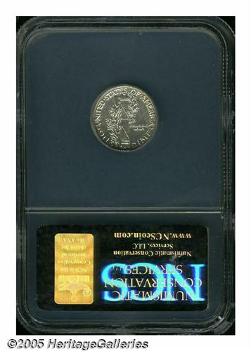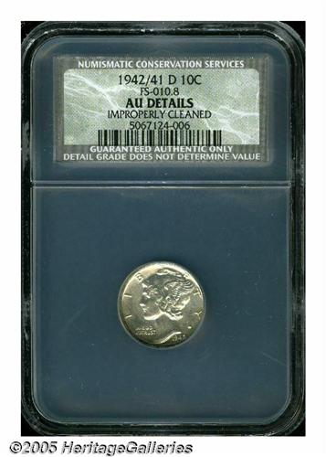 <B>1942/1-D<10C> AU Details, Improperly Cleaned, NCS.</B></I> FS-010.8. The otherwise slate-gray surfaces display a splash of pale golden color at the lower right obverse. Both sides are minimally worn with striking definition that exhibits full cross bands. This lot offers a popular and elusive error in a highly collectible grade.<BR><I>From The Empire State Collection.</B></I>