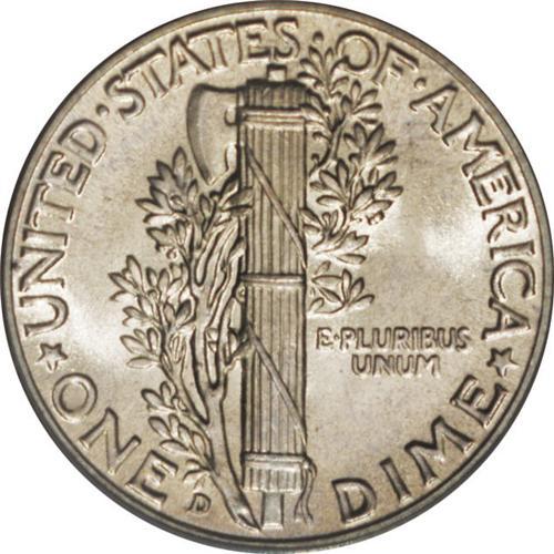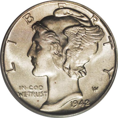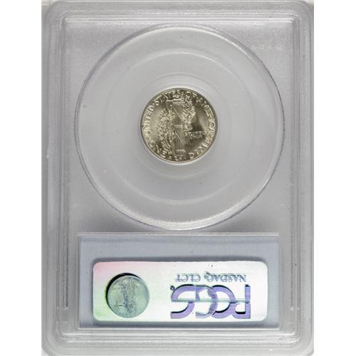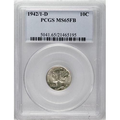 <B>1942/1-D 10C MS65 Full Bands PCGS.</B></I> FS-010.8. The overdate feature on the 1942/1-D is far less dramatic than its P-mint counterpart, which goes a long way in explaining why it remained undiscovered until approximately 20 years after production. True to its diagnostics, the variety is most easily distinguished by clear doubling at the base of the 4. Both sides of this essentially untoned Gem representative display a vibrant, sheen and impeccable fields. Its importance in the completion of a high quality set of Mercury dimes cannot be overstated. Population: 15 in 65, 11 finer (11/06).<BR><BR><b>Shipping:</b> Coin/Currency (<a target="_blank" href="http://www.heritageauctions.com/common/shipping.php">view shipping information</a>)