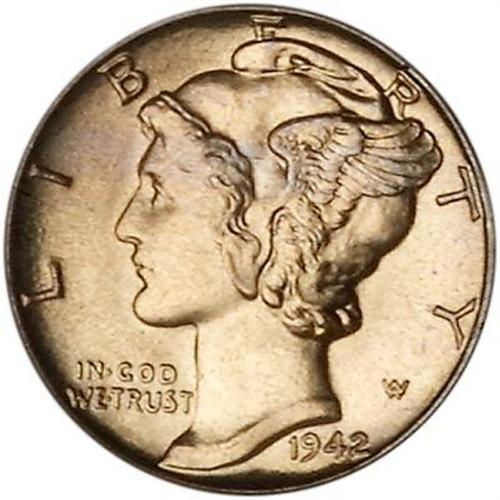 The 1942/1-D dime arose out of the Mint's frenzied production schedule during the Second World War. To save a moment in time, an unused 1941-dated die was given a second blow from a 1942-dated hub before being shipped west to the Denver Mint. This overdate lay undiscovered until 1962, and, as such, high quality examples are rarely seen in today's hobby. (#5041)<p><i>Joshua II Collection</i>