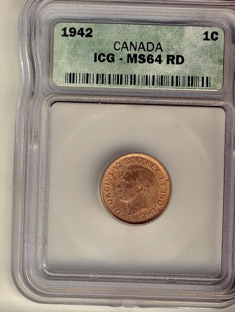 1942 1¢ ICG MS64RD. 85% red.