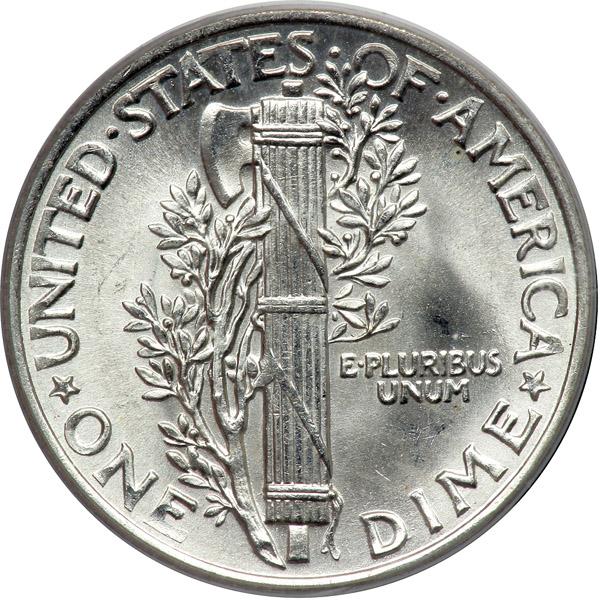 The present premium Gem has blazing luster and silvery color. Although not razor-sharp on the bands (few are), the strike is decidedly above average with very clear overdate 2/1, while the surfaces are nearly pristine. It is clearly a candidate for Mercury Dime with Varieties PCGS Registry Sets. Pop 2; none finer at PCGS (PCGS # 5036) .