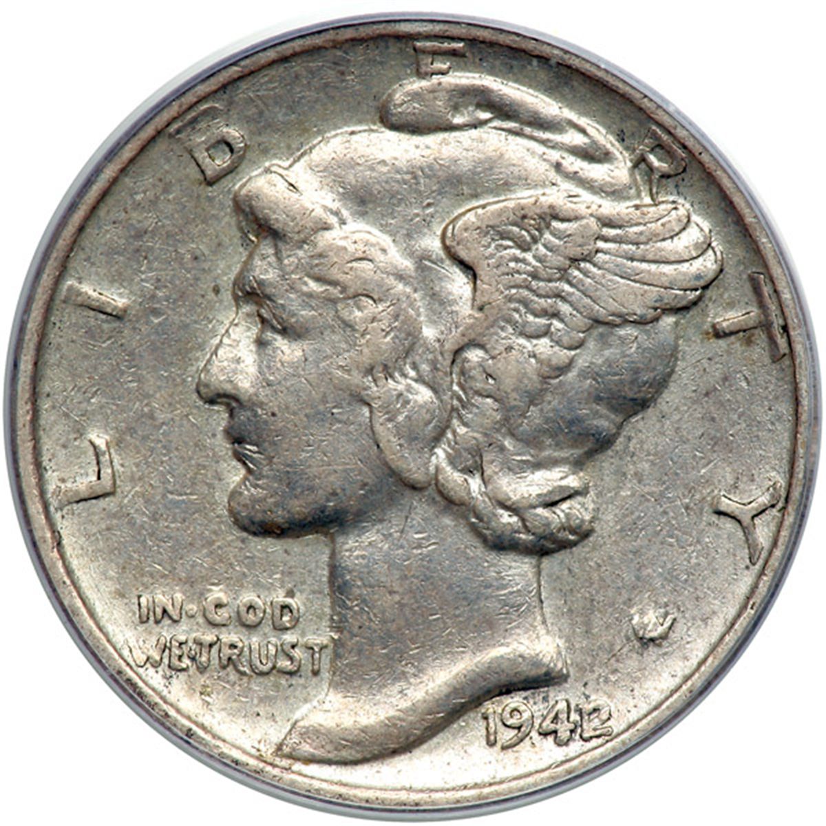 1942/1 Mercury Dime. PCGS graded EF-40. Nicely toned and has the look of a higher grade, the overdate feature is clear on this well preserved example (PCGS # 5036) .
