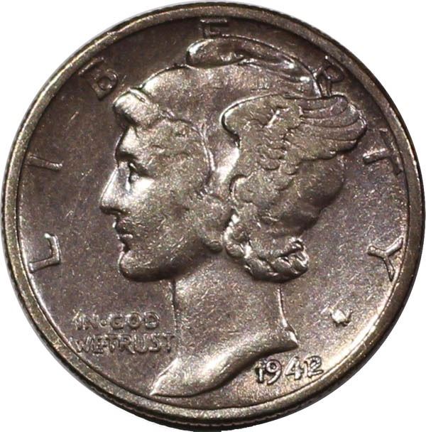 1942/1 Mercury Dime. NGC graded Details of Extremely Fine. Removed from slab, original tag included. Cleaned.
