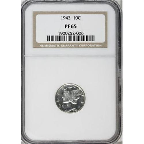 <B>1942 10C PR65 NGC.</B></I> NGC Census: (886/2089). PCGS Population (1627/2100). Mintage: 22,329. Numismedia Wsl. Price for NGC/PCGS coin in PR65: $235. (#5077)<BR><BR><B>Coin Engraver:</B> Adolph A. Weinman<BR><BR><b>Shipping:</b> Coins & Currency (<a target="_blank" href="http://www.heritageauctions.com/common/shipping.php">view shipping information</a>)
