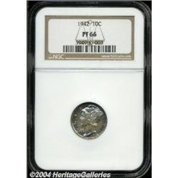 <table><tbody><tr><td><table> <TR><TD width="100%"><TABLE cellSpacing=1 cellPadding=3 width="100%" border=0><TBODY><TR><TD width="100%" bgColor=#79735c><FONT face=arial color=#ffffff size=3><B>Description</B> </FONT></TD></TR><TR><TD width="100%" bgColor=#ffffff><FONT face=arial size=2><B>1942 10C PR66 NGC.</B></I> Spongy, pale brown tone with a little magenta scattered in covers most of this premium Gem proof Mercury dime. It still manages to exhibit brilliant proof luster, needle-sharp strike detail, and pleasing surfaces. </FONT></TD></TR></TBODY></TABLE></TD></TR></TBODY></TABLE><BR><A name=PricesRealized></A><TABLE cellSpacing=0 cellPadding=0 width="100%" bgColor=#000000 border=0><TBODY><TR><TD width="100%"><TABLE cellSpacing=1 cellPadding=3 width="100%" border=0><TBODY><TR><TD width="100%" bgColor=#79735c><A name=PR><FONT face=arial color=#ffffff size=3><B>Previous Prices from Heritage Auctions</B> </FONT></A></TD></TR><TR><TD bgColor=#f6f6ed><TABLE cellSpacing=0 cellPadding=0 width="100%" border=1><TBODY><TR><TD align=middle width="33%"><B>Date</B></TD><TD align=middle width="33%"><B>Service</B></TD><TD align=middle width="33%"><B>Price</B></TD></TR><TR bgColor=whitesmoke><TD width="33%"><B>12/02/2003</B></TD><TD width="33%">NGC</TD><TD width="33%">$276.00</TD></TR><TR bgColor=whitesmoke><TD width="33%"><B>11/18/2003</B></TD><TD width="33%">PCGS</TD><TD width="33%">$287.50</TD></TR><TR bgColor=whitesmoke><TD width="33%"><B>10/21/2003</B></TD><TD width="33%">PCGS</TD><TD width="33%">$287.50</TD></TR><TR bgColor=whitesmoke><TD width="33%"><B>09/09/2003</B></TD><TD width="33%">NGC</TD><TD width="33%">$287.50</TD></TR><TR bgColor=whitesmoke><TD width="33%"><B>08/05/2003</B></TD><TD width="33%">NGC</TD><TD width="33%">$310.50</TD></TR><TR bgColor=whitesmoke><TD width="33%"><B>07/22/2003</B></TD><TD width="33%">PCGS</TD><TD width="33%">$322.00</TD></TR><TR bgColor=whitesmoke><TD width="33%"><B>05/27/2003</B></TD><TD width="33%">ANACS</TD><TD width="33%">$299.00</TD></TR><TR bgColor=whitesmoke><TD width="33%"><B>02/11/2003</B></TD><TD width="33%">NGC</TD><TD width="33%">$356.50</TD></TR><TR bgColor=whitesmoke><TD width="33%"><B>09/03/2002</B></TD><TD width="33%">NGC</TD><TD width="33%">$333.50</TD></TR><TR bgColor=whitesmoke><TD width="33%"><B>07/09/2002</B></TD><TD width="33%">PCGS</TD><TD width="33%">$333.50</TD></TR><TR bgColor=whitesmoke><TD width="33%"><B>02/19/2002</B></TD><TD width="33%">PCGS</TD><TD width="33%">$293.25</TD></TR><TR bgColor=whitesmoke><TD width="33%"><B>01/22/2002</B></TD><TD width="33%">PCGS</TD><TD width="33%">$207.00</TD></TR><TR bgColor=whitesmoke><TD width="33%"><B>09/11/2001</B></TD><TD width="33%">NGC</TD><TD width="33%">$193.00</TD></TR><TR bgColor=whitesmoke><TD width="33%"><B>08/28/2001</B></TD><TD width="33%">NGC</TD><TD width="33%">$185.00</TD></TR><TR bgColor=whitesmoke><TD width="33%"><B>07/31/2001</B></TD><TD width="33%">PCGS</TD><TD width="33%">$165.00</TD></TR><TR bgColor=whitesmoke><TD width="33%"><B>07/10/2001</B></TD><TD width="33%">PCGS</TD><TD width="33%">$200.00</TD></TR><TR bgColor=whitesmoke><TD width="33%"><B>02/27/2001</B></TD><TD width="33%">NGC</TD><TD width="33%">$145.00</TD></TR><TR bgColor=whitesmoke><TD width="33%"><B>12/19/2000</B></TD><TD width="33%">PCGS</TD><TD width="33%">$140.00</TD></TR><TR bgColor=whitesmoke><TD width="33%"><B>08/08/2000</B></TD><TD width="33%">NGC</TD><TD width="33%">$130.00</TD></TR><TR bgColor=whitesmoke><TD width="33%"><B>12/21/1999</B></TD><TD width="33%">PCGS</TD><TD width="33%">$140.00</TD></TR><TR bgColor=whitesmoke><TD width="33%"><B>10/06/1999</B></TD><TD width="33%">PCGS</TD><TD width="33%">$130.00</TD></TR><TR bgColor=whitesmoke><TD width="33%"><B>01/07/2004</B></TD><TD width="33%">PCGS</TD><TD width="33%">$300.15</TD></TR><TR bgColor=whitesmoke><TD width="33%"><B>11/17/2003</B></TD><TD width="33%">NGC</TD><TD width="33%">$258.75</TD></TR><TR bgColor=whitesmoke><TD width="33%"><B>11/17/2003</B></TD><TD width="33%">PCGS</TD><TD width="33%">$276.00</TD></TR><TR bgColor=whitesmoke><TD width="33%"><B>11/17/2003</B></TD><TD width="33%">NGC</TD><TD width="33%">$274.85</TD></TR><TR bgColor=whitesmoke><TD width="33%"><B>11/17/2003</B></TD><TD width="33%">PCGS</TD><TD width="33%">$289.80</TD></TR><TR bgColor=whitesmoke><TD width="33%"><B>11/17/2003</B></TD><TD width="33%">PCGS</TD><TD width="33%">$356.50</TD></TR><TR bgColor=whitesmoke><TD width="33%"><B>11/07/2003</B></TD><TD width="33%">NGC</TD><TD width="33%">$300.00</TD></TR><TR bgColor=whitesmoke><TD width="33%"><B>07/29/2003</B></TD><TD width="33%">PCGS</TD><TD width="33%">$1,207.50</TD></TR><TR bgColor=whitesmoke><TD width="33%"><B>08/06/2003</B></TD><TD width="33%">NGC</TD><TD width="33%">$218.50</TD></TR><TR bgColor=whitesmoke><TD width="33%"><B>05/31/2003</B></TD><TD width="33%">NGC</TD><TD width="33%">$276.00</TD></TR><TR bgColor=whitesmoke><TD width="33%"><B>05/31/2003</B></TD><TD width="33%">ANACS</TD><TD width="33%">$287.50</TD></TR><TR bgColor=whitesmoke><TD width="33%"><B>05/31/2003</B></TD><TD width="33%">PCGS</TD><TD width="33%">$460.00</TD></TR><TR bgColor=whitesmoke><TD width="33%"><B>05/31/2003</B></TD><TD width="33%">NGC</TD><TD width="33%">$345.00</TD></TR><TR bgColor=whitesmoke><TD width="33%"><B>05/05/2003</B></TD><TD width="33%">PCGS</TD><TD width="33%">$350.75</TD></TR><TR bgColor=whitesmoke><TD width="33%"><B>03/23/2003</B></TD><TD width="33%">NGC</TD><TD width="33%">$345.00</TD></TR><TR bgColor=whitesmoke><TD width="33%"><B>01/13/2003</B></TD><TD width="33%">PCGS</TD><TD width="33%">$345.00</TD></TR><TR bgColor=whitesmoke><TD width="33%"><B>01/11/2003</B></TD><TD width="33%">NGC</TD><TD width="33%">$373.75</TD></TR><TR bgColor=whitesmoke><TD width="33%"><B>11/23/2002</B></TD><TD width="33%">PCGS</TD><TD width="33%">$333.50</TD></TR><TR bgColor=whitesmoke><TD width="33%"><B>09/28/2002</B></TD><TD width="33%">NGC</TD><TD width="33%">$373.75</TD></TR><TR bgColor=whitesmoke><TD width="33%"><B>07/30/2002</B></TD><TD width="33%">PC