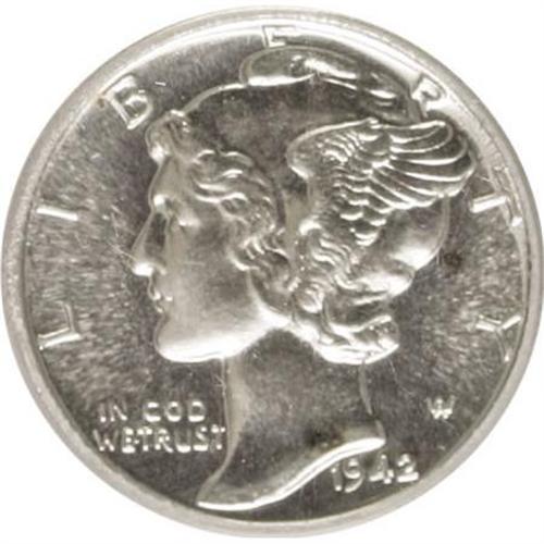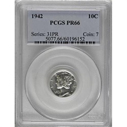 <B>1942 10C PR66 PCGS.</B></I> PCGS Population (1443/605). NGC Census: (1291/661). Mintage: 22,329. Numismedia Wsl. Price for NGC/PCGS coin in PR66: $292. (#5077)<BR><BR><B>Coin Engraver:</B> Adolph A. Weinman<BR><BR><b>Shipping:</b> Coins & Currency (<a target="_blank" href="http://www.heritageauctions.com/common/shipping.php">view shipping information</a>)