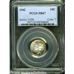 <B>1942 10C PR67 PCGS.</B></I> Bright surfaces display a whisper of gold-orange toning at the obverse periphery, and are devoid of blemishes.