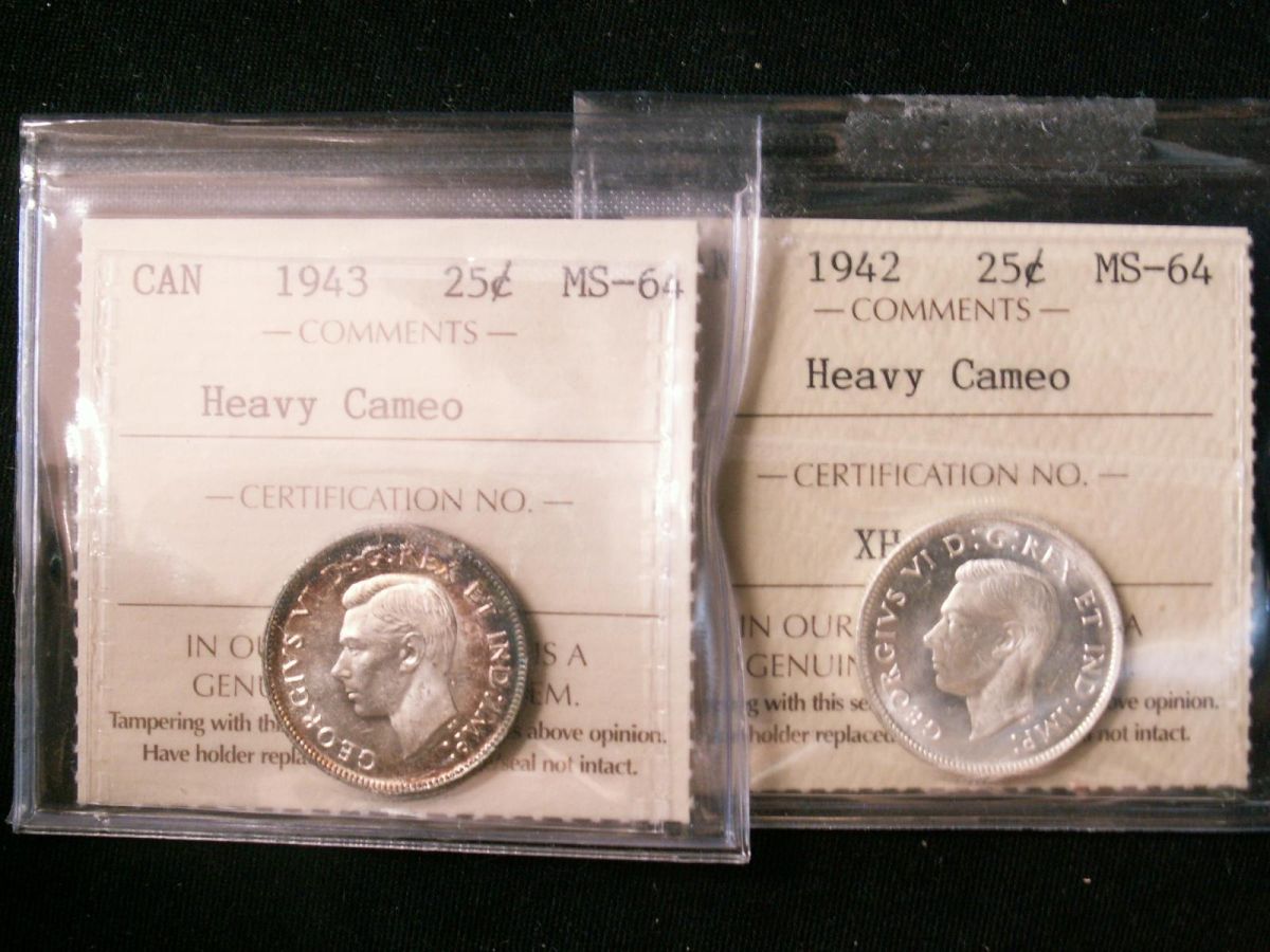 1942 & 1943 25¢ ICCS MS64 Heavy Cameo. Lot of 2 attractive examples both designated HC.